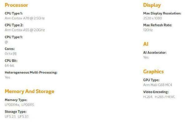| CPU架構(gòu) | 4×A78 2.6GHz+4×A55 2.0GHz | |