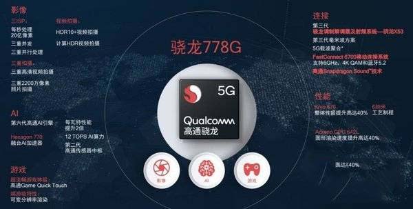 驍龍 778G 搭載了 Spectra 570L ISP,支持三 ISP 架構(gòu),支持同時使用三個攝像頭進行拍攝或錄制視頻,支持拍攝最高 1.92 億像素照片及 4K HDR10+ 視頻;其第六代高通 AI 引擎集成了 Hexagon 770 DSP,AI 算力達到 12TOPS。