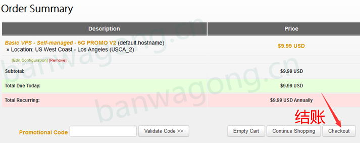 核對我們選擇方案的價(jià)格,沒有問題后點(diǎn)擊CHECKOUT結(jié)賬。