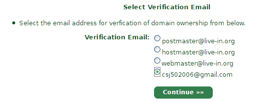 選擇一個驗(yàn)證的郵箱,有postmaster@域名、hostmaster@域名、webmaster@域名、和注冊域名時的郵箱。