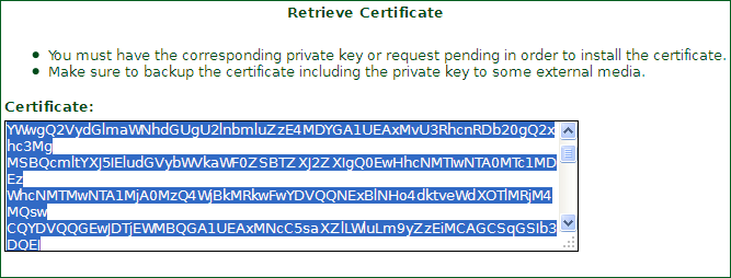 Tool Box - Retrieve Certificate,選擇申請證書的域名,將框中的內(nèi)容保存為.crt文件。比如ssl.crt。這個就是證書文件啦。
