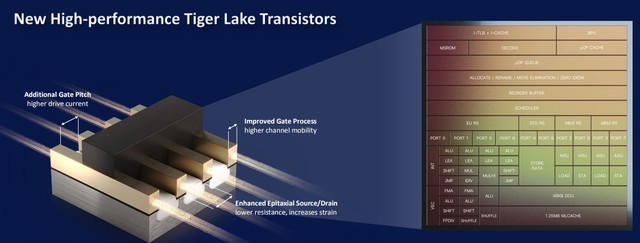 英特爾在高頻敏感IP中使用這一全新的晶體管技術(shù),如處理器內(nèi)核,高速總線和內(nèi)存子系統(tǒng),同時(shí)還在非高頻率關(guān)鍵IP中,如Type-C和PCIe中,使用現(xiàn)有高閥值電壓晶體管,從而使其變得更加高效。這些技術(shù)使得晶體管的運(yùn)行速度得到提升,同時(shí)降低泄漏,進(jìn)而降低這些晶體管的運(yùn)行電壓。