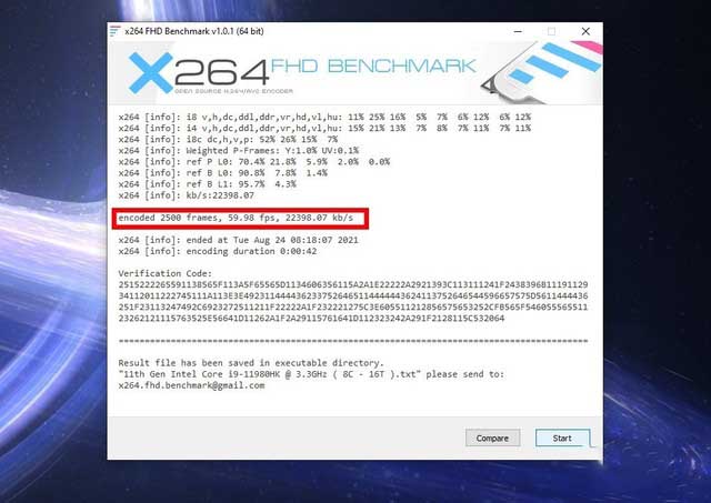 最后是H.264視頻編碼性能。完成2500 frames編碼僅用時(shí)42秒,幀率為59.98fps。在各類專項(xiàng)指令集以及自身強(qiáng)勁性能加持之下,酷睿i9-11980HK處理器在視頻編碼方面的表現(xiàn)非常出色。