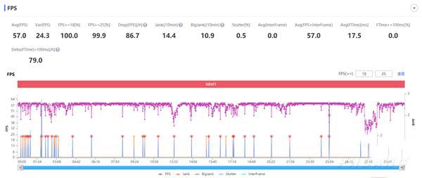 搭載驍龍888處理器的機型,在特效全開的畫質(zhì)設(shè)置下,玩《原神》游戲平均幀數(shù)為57幀,同樣能夠保持很好的流暢度。