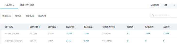 平均響應(yīng)時(shí)間:入口請求在觀察周期內(nèi)的平均響應(yīng)時(shí)間。