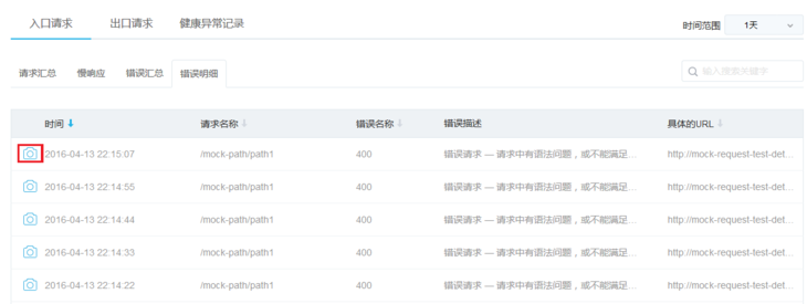 如果需要進(jìn)一步確定問題的原因,還可以使用快照功能。異常記錄前面若有照相機(jī)圖標(biāo),表示蜂巢記錄了這次異常記錄的快照信息,如下圖所示: