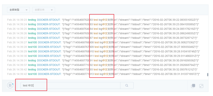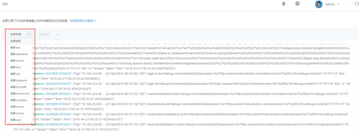 (1)日志分類、選擇過濾框可以按容器名、服務(wù)名以及日志文件名進(jìn)行日志過濾;