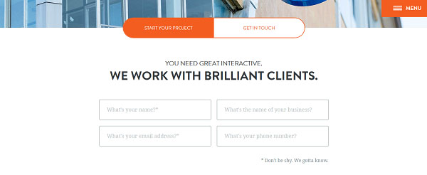 如果你看了sketchybusiness.io的表單,你絕對(duì)會(huì)喜歡它的鼠標(biāo)懸停和按鈕按下?tīng)顟B(tài)。而且,“別害羞”的提示文案增加了一絲親切幽默的感覺(jué)。