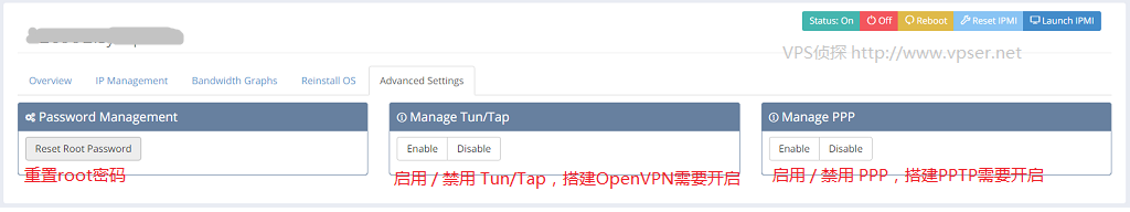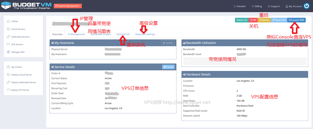 VPS管理界面及功能說(shuō)明如下圖: