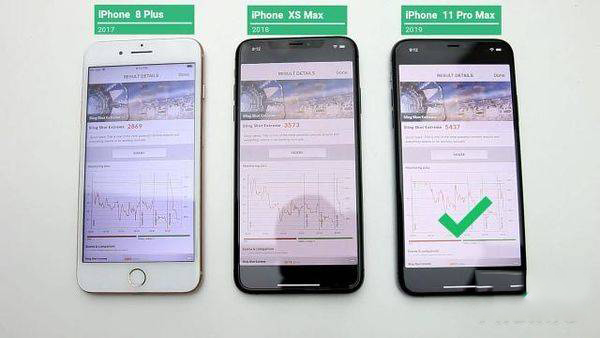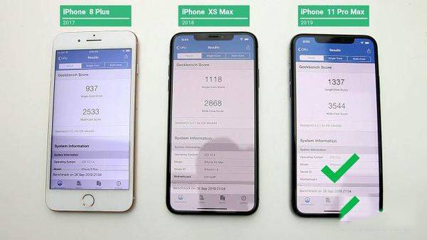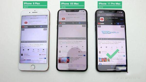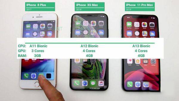 這一次參與測(cè)試的機(jī)型分別是iPhone8Plus,搭載A11處理器采用三核處理模塊,內(nèi)存3G,發(fā)布于2017年。iPhoneXSMax,搭載A12處理器采用四核處理模塊,內(nèi)存4G,發(fā)布于2018年。iPhone11ProMax,搭載A13處理器采用四核處理模塊,內(nèi)存4G,發(fā)布于2019年。