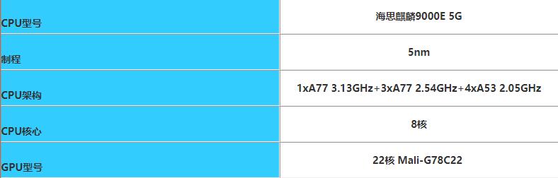 海思麒麟9000E與海思麒麟9000處理器兩款處理器均采用5納米制作工藝,海思麒麟9000E與海思麒麟9000處理器兩款處理器的CPU部分是完全一樣的,沒有區(qū)別。兩款芯片大核心均采用A77架構(gòu),主頻高達(dá)3.13GHz。