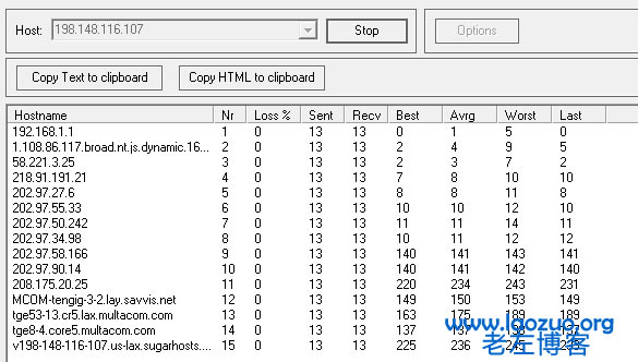 第三,WinMTR進行追蹤及PING節(jié)點測試:
