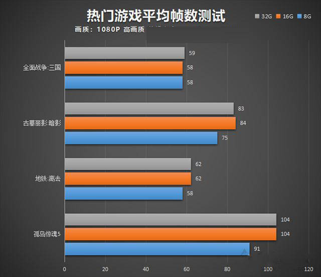 在游戲實測中,雙通道16G內存相比單通道8G內存平均提高了10%左右,提升幅度還是很理想的,不過可能也有雙通道內存的加持,而在雙通道32G內存和16G內存性能差異幾乎沒有,所以說,對于16G內存基本可以滿足所有游戲的需求,而對于大多數的網游需求來看,8G內存完全足夠。