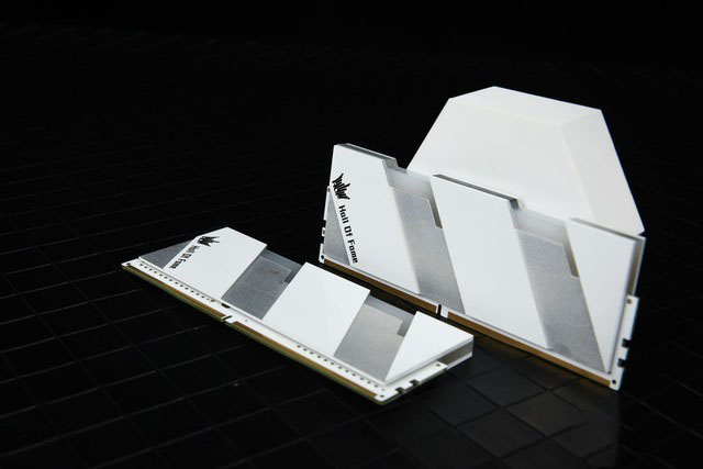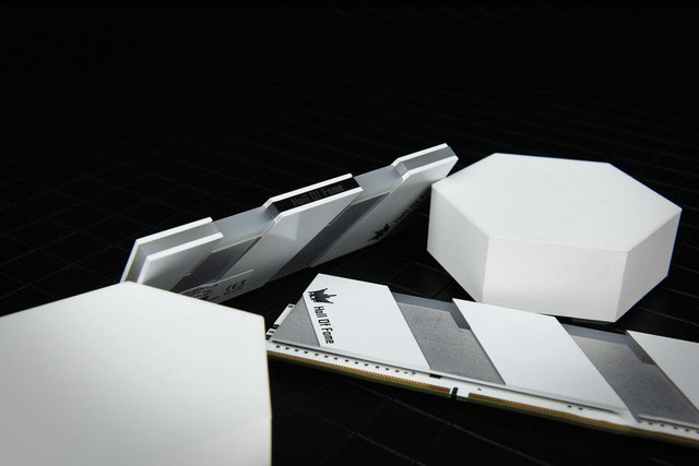 在散熱方面,這款內(nèi)存搭載的是HOF PRO RGB裂刃散熱器,凹凸兩層分別展示了金屬磨砂質(zhì)感和電泳白工藝下的“冰刃”效果,白銀簡單配色,搭配利落線條,層次分明,整體搭配起來具有較強的立體感,詮釋出簡單的幾何藝術(shù)美。