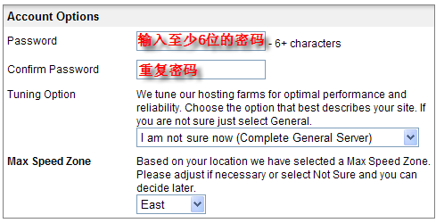 7、賬戶選項這里只要輸入密碼,其他兩項采用默認(rèn)設(shè)置即可,見下圖。