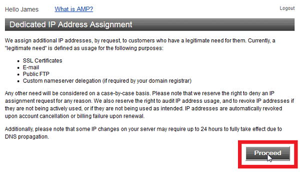 購買主機(jī)包本身未包含免費(fèi)IP的用戶可在AMP(Account Management Panel)操作購買,此獨(dú)立IP價格為24美元/年,具體操作步驟如下。