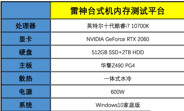 本次使用的測試平臺如下表所示:英特爾十代酷睿i7-10700K處理器、NVIDIAGeForceRTX2060獨顯,存儲為512GBSSD+2TBHDD的混合存儲,主板華擎Z490PG4、采用一體式水冷,電源600W,系統(tǒng)為Windows10家庭版。