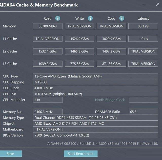 通過(guò)測(cè)試結(jié)果我們不難看出內(nèi)存頻率的提升,對(duì)于性能的影響還是非常大,當(dāng)內(nèi)存頻率超頻至4333Mhz的時(shí)候,內(nèi)存的讀取速度為56780MB/s,延遲為80ns,這樣的性能表現(xiàn)與2666MHz頻率下的表現(xiàn)相比提升十分明顯,大約為1.5倍以上。
