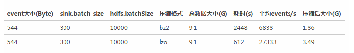 首先,美團的HdfsSink寫到hadoop的文件采用lzo壓縮存儲。 HdfsSink可以讀取hadoop配置文件中提供的編碼類列表,然后通過配置的方式獲取使用何種壓縮編碼,美團目前使用lzo壓縮數(shù)據(jù)。采用lzo壓縮而非bz2壓縮,是基于以下測試數(shù)據(jù):
