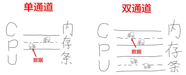 CPU與內(nèi)存條之間的數(shù)據(jù)傳輸是有來有回的,單通道就相當于一條馬路分左右車道,一個車道負責去,一個車道負責回。 雖然秩序井然但是由于馬路(帶寬)較窄,數(shù)據(jù)流量不會很大。