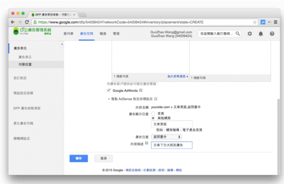 這里示范如何使用 Google DFP 來刊登廣告,突破 AdSense 最多只能放三個廣告的限制。