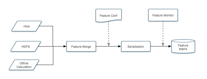 3、HDFS:特征矩陣可能融合第三方服務的特征,一般第三方服務將產(chǎn)生的特征按照約定的格式存儲在HDFS上。