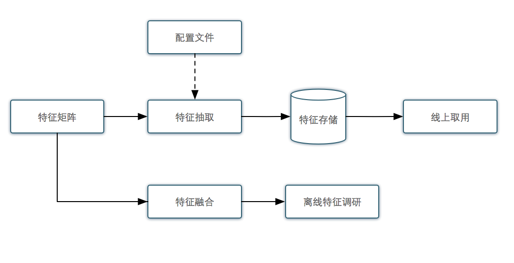 其中特征矩陣既提供在線的特征倉庫,又可提供離線的特征調(diào)研。線上服務需要大量的特征來對POI/DEAL質(zhì)量打分,特征分散會造成服務取用特征很耗時,特征矩陣將特征整合,很好的解決了特征耗時的問題。一般調(diào)研一個新特征需要積累一段時間的數(shù)據(jù),將特征放入特征矩陣,