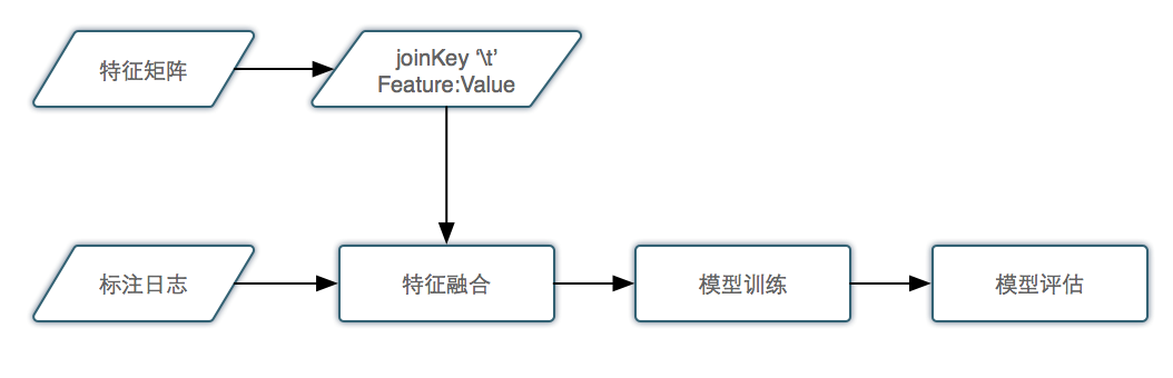 其中,從特征矩陣取出待調(diào)研的新特征,格式化為 joinKey '\t' FeatureName:FeatureValue, 例如 12345 '\t' CTR:0.123,joinkey為poiid, 新特征為CTR,特征值為0.123。格式化后的新特征文件和標注好的rerank日志作為輸入,經(jīng)過Map/Reduce處理生成新的標注日志,用于模型訓練。