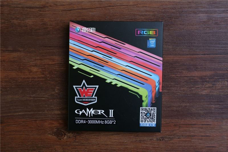 包裝正中央是七條不同顏色的內(nèi)存,象征著這款內(nèi)存擁有7種不同顏色的燈光效果。左上角是影馳的Logo,左下角是著名的游戲俱樂(lè)部WE的標(biāo)志。