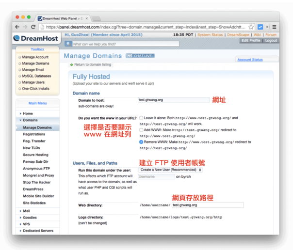 在 DreamHost 網(wǎng)頁主機空間新增網(wǎng)站與 FTP 賬號