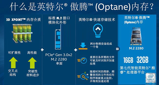 傲騰內存基于全新的3D Xpoint閃存技術,主要提升內存和硬盤的速度,從而帶來更好的流暢體驗。