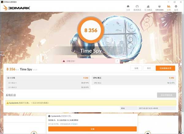 3000MHz下顯卡3DMARK性能測試得分8356