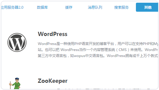 12、阿里百川TAE除了安裝Wordpress等熱門程序外,還可以自己安裝MysqL、MongoDB等數(shù)據(jù)庫服務(wù),方便你用于應(yīng)用開發(fā)。