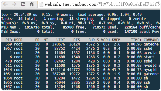 6、通過TAE的WebSSH,可以幫助你在瀏覽器中像在本地使用SSH一樣來管理TAE服務(wù)器。