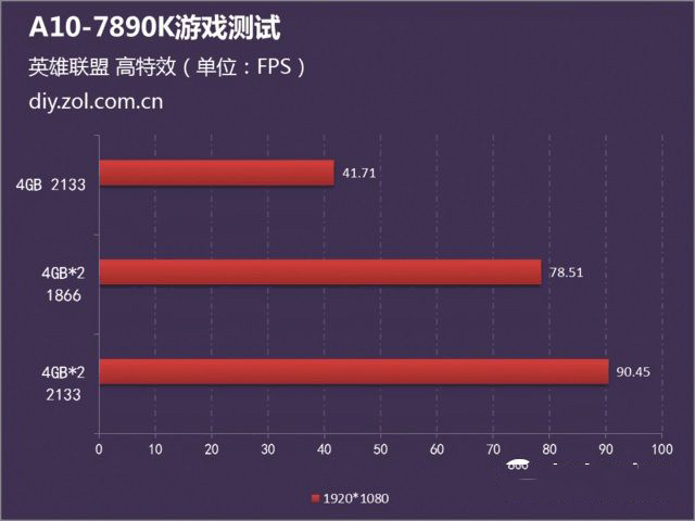 A10-7890K在4GB2133下平均41.71幀,在4GB*21866下平均78.51幀,在4GB*22133下平均90.45幀。