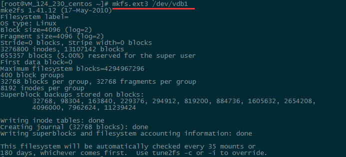 使用“fdisk -l”命令,即可查看到,新的分區(qū)vdb1已經(jīng)創(chuàng)建完成。
