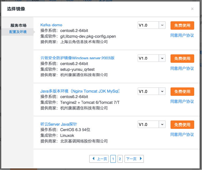 選擇需要使用的鏡像商品,點擊【免費使用】