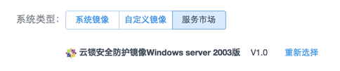 在云服務(wù)器購買界面,選擇【系統(tǒng)類型】時,選中【服務(wù)市場】,點擊【從服務(wù)市場選擇】,如下圖