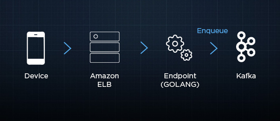 這個(gè)服務(wù)使用GO語(yǔ)言編寫(xiě),這個(gè)服務(wù)使用了亞馬遜彈性負(fù)載均衡器(ELB),并將每一個(gè)消息負(fù)荷放入一個(gè)持久化的Kafka隊(duì)列。