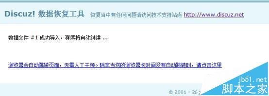 20、點(diǎn)擊確定,開(kāi)始恢復(fù)。恢復(fù)數(shù)據(jù)的整個(gè)過(guò)程會(huì)在一個(gè)新頁(yè)面完成,您成功恢復(fù)數(shù)據(jù)后請(qǐng)務(wù)必及時(shí)刪除restore.php文件。
