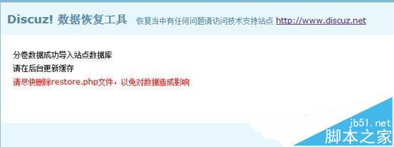 23、請(qǐng)?jiān)诤笈_(tái)更新緩存,并盡快刪除restore.php文件,以免對(duì)數(shù)據(jù)造成影響。