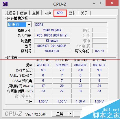 3、下載完成后打開(kāi)CPUZ,點(diǎn)擊“SPD”頁(yè)面。