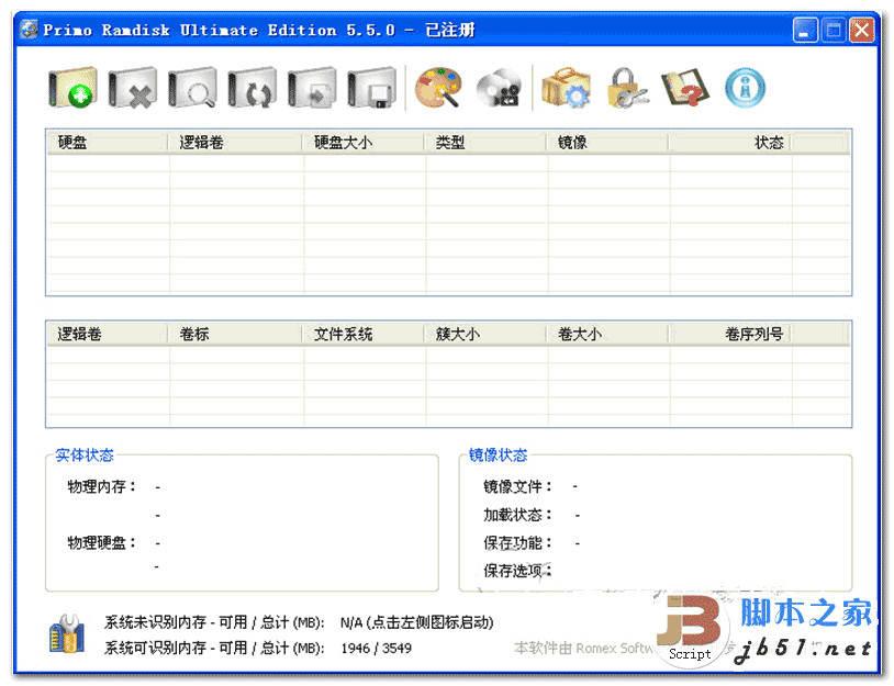 1)第一行圖標(biāo)從左到右依次為 新建RAMDISK,刪除已有RAMDISK,修改已有RAMDISK配置,初始化已有RAMDISK配置,保存RAMDISK配置到文件,從文件回復(fù)RAMDISK配置,環(huán)境變量設(shè)置,iso對(duì)拷,軟件選項(xiàng),激活軟件,網(wǎng)頁(yè)幫助,軟件信息