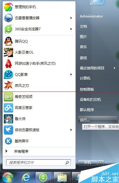 1、打開“開始”菜單,點擊“運行”按鈕