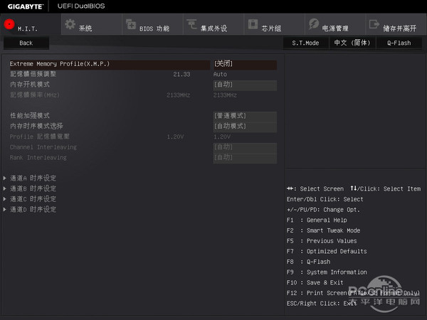 重置技嘉X99主板的BIOS后,以默認(rèn)的系統(tǒng)設(shè)置下運(yùn)行。內(nèi)存默認(rèn)頻率為2133MHz,是DDR4的入門頻率,時(shí)序?yàn)闃?biāo)準(zhǔn)的15-15-15-36-2T。