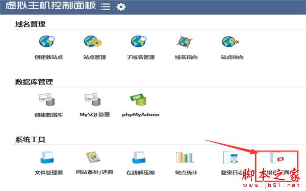 4、上傳完成后,登陸空間控制面板,找到出錯頁面(一般空間的名稱可能有所不同,要是沒找到的話就咨詢一下空間服務(wù)商看看),在“出錯頁面”中進(jìn)行設(shè)置。