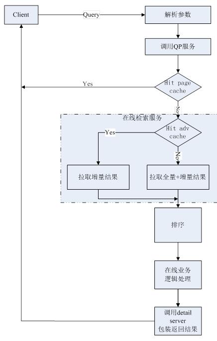 搜索服務(wù)集群:由很多個(gè)merger節(jié)點(diǎn)組成的集群。接收到查詢query后,將請求通過qp觸發(fā)有策略地下發(fā)到在線檢索服務(wù)集群和其他服務(wù)集群,并對各個(gè)服務(wù)的返回結(jié)果進(jìn)行合并排序,然后調(diào)用detail server包裝結(jié)果,最終返回給用戶。