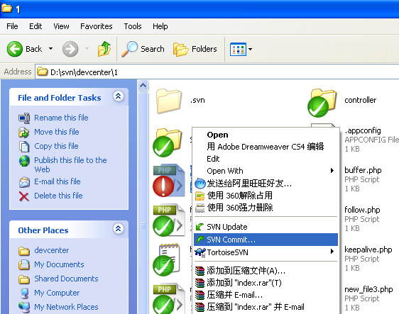 在SVN工作目錄下,對于文件修改,完成后只需要commit就ok了,但對于新增文件,或者從其它目錄復制進來的文件或文件夾,需要在commit之前需 要做一步add操作,即將文件或文件夾添加到svn工作目錄中來,否則SVN客戶端不認它。具體操作很簡單,如圖: