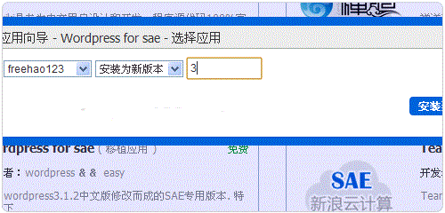 4、為Wordpress for sae 選擇相應(yīng)的版本,如果有多個應(yīng)用,可以選擇安裝在這不同的地方,如下圖: