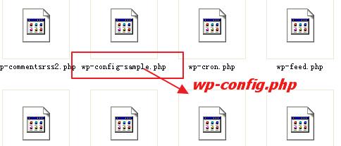 打開Wordpress文件夾,找到wp-config-sample.php文件夾,將其改名為wp-config.php,操作見下圖: